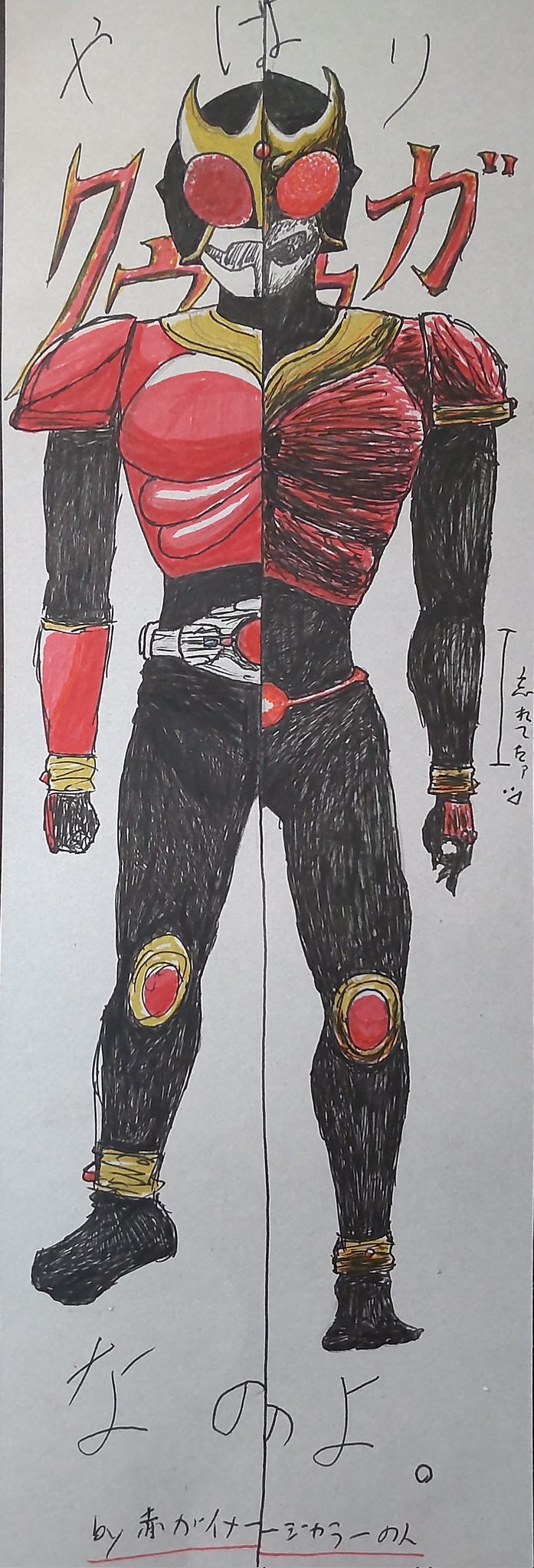 んやはりクウガなのよ。 左は安心感のあるTV版 右は好きすぎる漫画版 ※うろ覚えで描いてます、細かいところは指摘しないでやってくださいm(_ _)m #イラスト #仮面ライダークウガ #赤がイメージカラー #実はフォロバ100だったりする