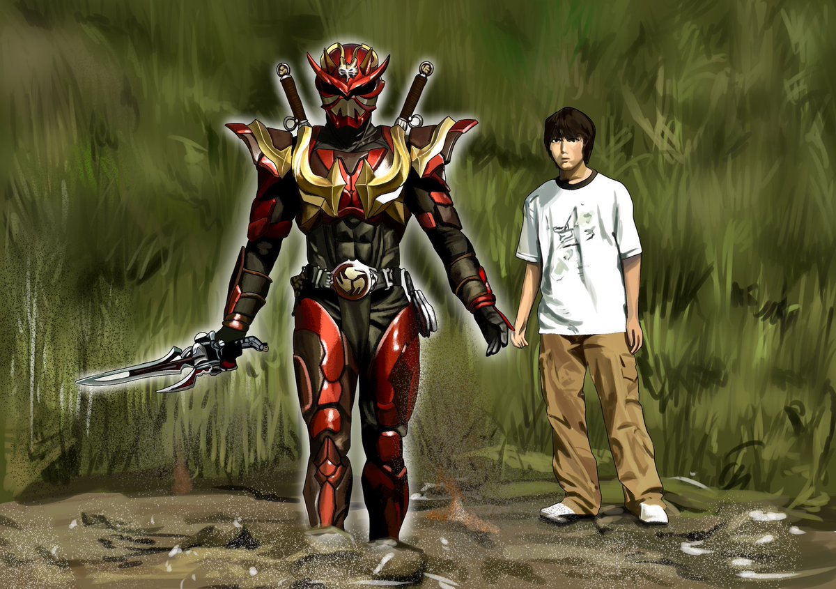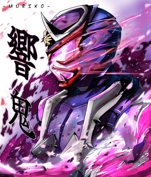 黒背景で妥協しました… フィルターのおかげでなんとかそれっぽく出来ました。所々雑いのはごめんなさい。出来ればもう響鬼系は描きたくないw #仮面ライダー響鬼 #仮面ライダーイラスト #イラスト