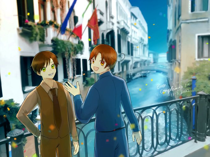 マカロニちゃんお誕生日おめでとう!!🥳🥳🥳🎂🎉🎉🎉 2人のご飯も建物も絵も全部大好き!! いつか遺跡巡りに行きたいな…🥰 #くるん兄弟生誕祭2022 #伊誕2022 #マカロニ兄弟生誕祭2022