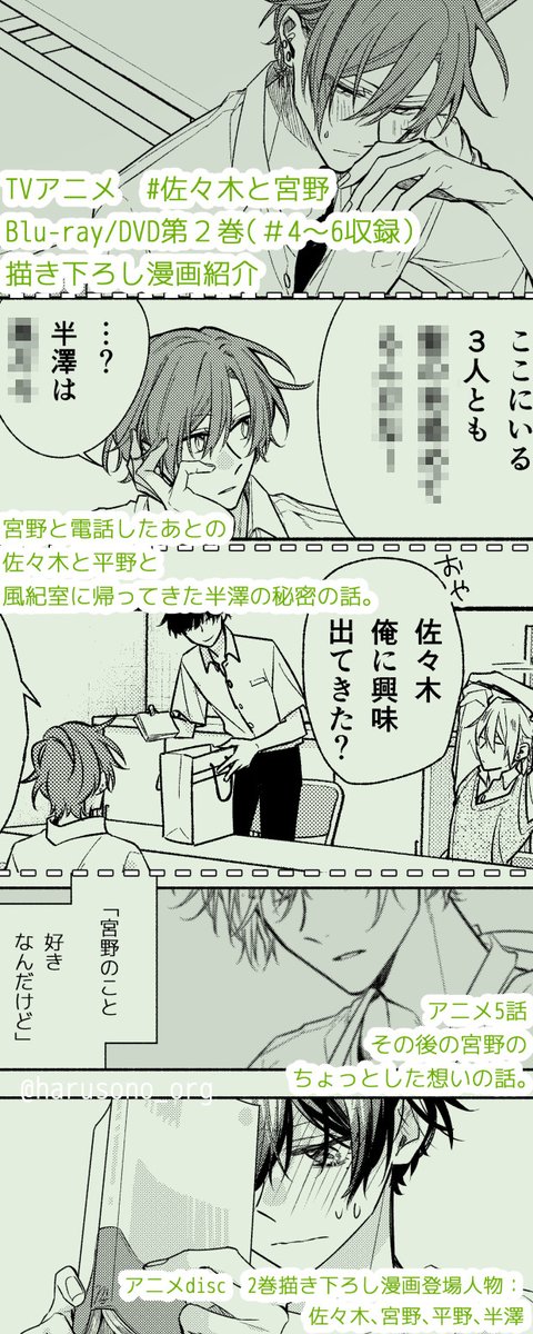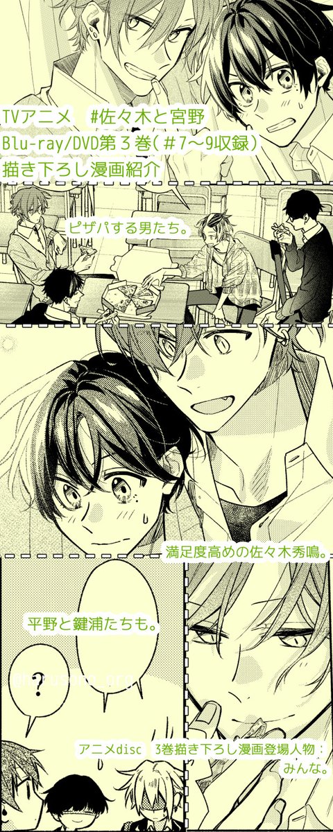 TVアニメ #佐々木と宮野 先日発売の ‼️第4巻‼️ sasamiya.com/bddvd/04.html 初回生産特典のブックレットの描き下ろし漫画紹介。 文化祭準備時の三年生のお話と、12話後の佐々木と宮野です。 アニメ全4巻発売おめでとうございます!小冊子の漫画も描かせていただきありがとうございます!