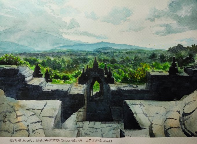#何度だっていいあなたの最高傑作見せて 特に1枚目は未だ習作。でもあのときの風景体験が忘れがたいのです。 これらは、追いかけるものに力があったと感じている作品です。 #水彩画 #watercolor