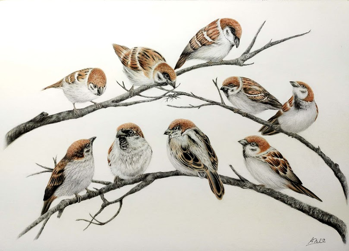 #作品を載せて福を呼び寄せよう " 春告げ " 立春過ぎにふさわしい ステキなタグありがとうございます。埋もれてた過去絵で シツレー致しマス🍀。 陽射しに春を感じることが 嬉しい限りですが、同時に 庭仕事の遅れに焦る 今日この頃。 バラの剪定とか、剪定とか、剪定とか〜‼︎‼︎