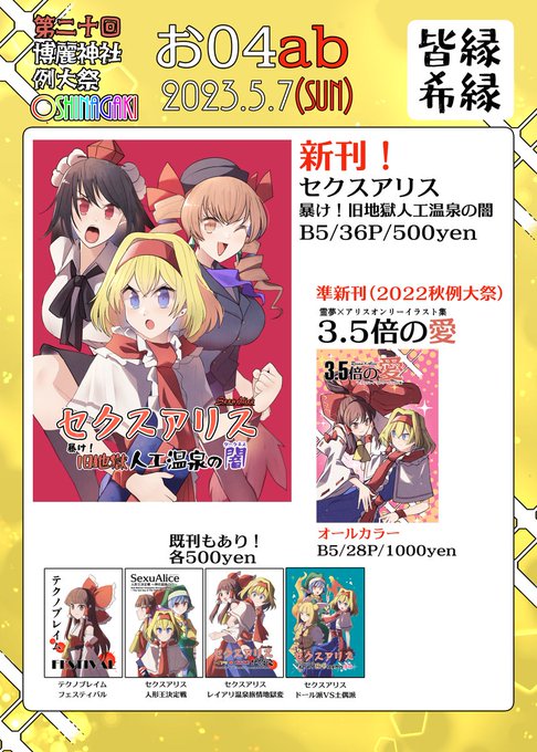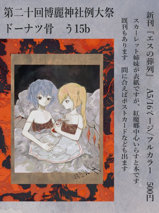 【例大祭告知】 春のアナログ永夜抄兎祭りにて今年もアナログイラストの合同誌を発行します。 東方アナログ永夜抄「兎」合同 フルカラー/22p/頒布価格1000円 委託先 お52ab「M art gallery」 お54a「はりねずみ屋さん」 #例大祭 #春のアナログ永夜抄祭り兎