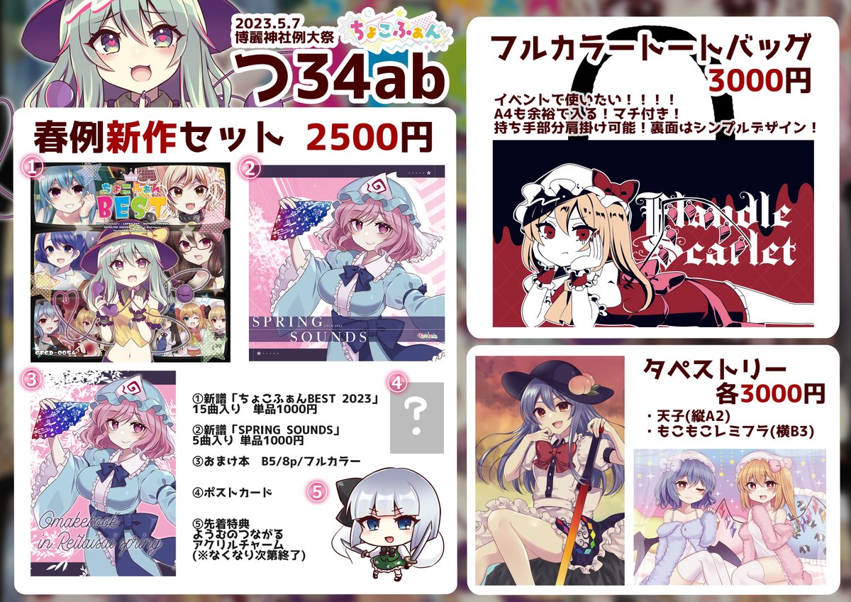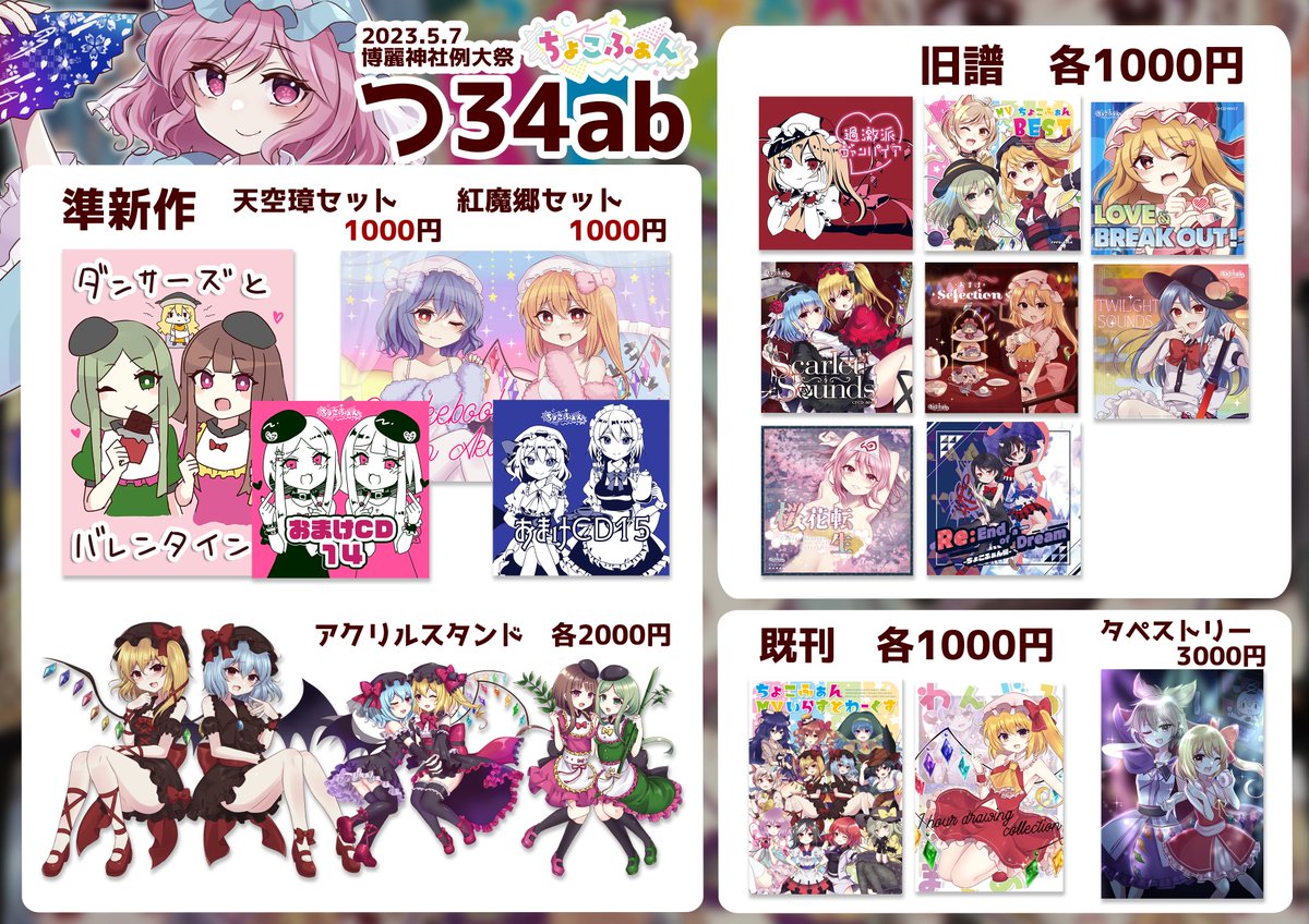 🍫⭐️#例大祭20 おしながき🍫⭐️ 【つ-34ab】ちょこふぁん🦐🦐🦐 新作MV💓📞youtu.be/_TPwhN6XN8M ちょこふぁんBEST🎧youtu.be/iy89lhxUvMY 妖々夢アルバム🌸youtu.be/qnU_RCSElqE 通販は例大祭が終わってからとなります! よろしくおねがいしますー!!