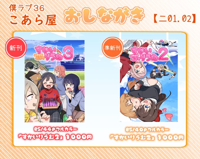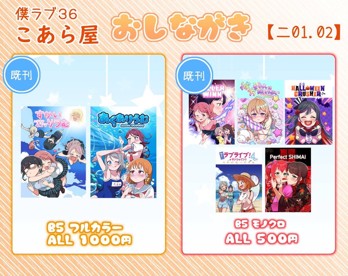 【 #僕ラブ36 おしながき】 ◆新刊◆Liella二期生本「ShiningStar」ポスカ付 ◆ミニ色紙/Liella一期生+二期生 ▶支部詳細pixiv.net/artworks/10465… ▶BOOTH頒布:1/23(月)予定k2corp.booth.pm 【スペース:結女03.04/K2Corp.】 明日は宜しくお願いします!