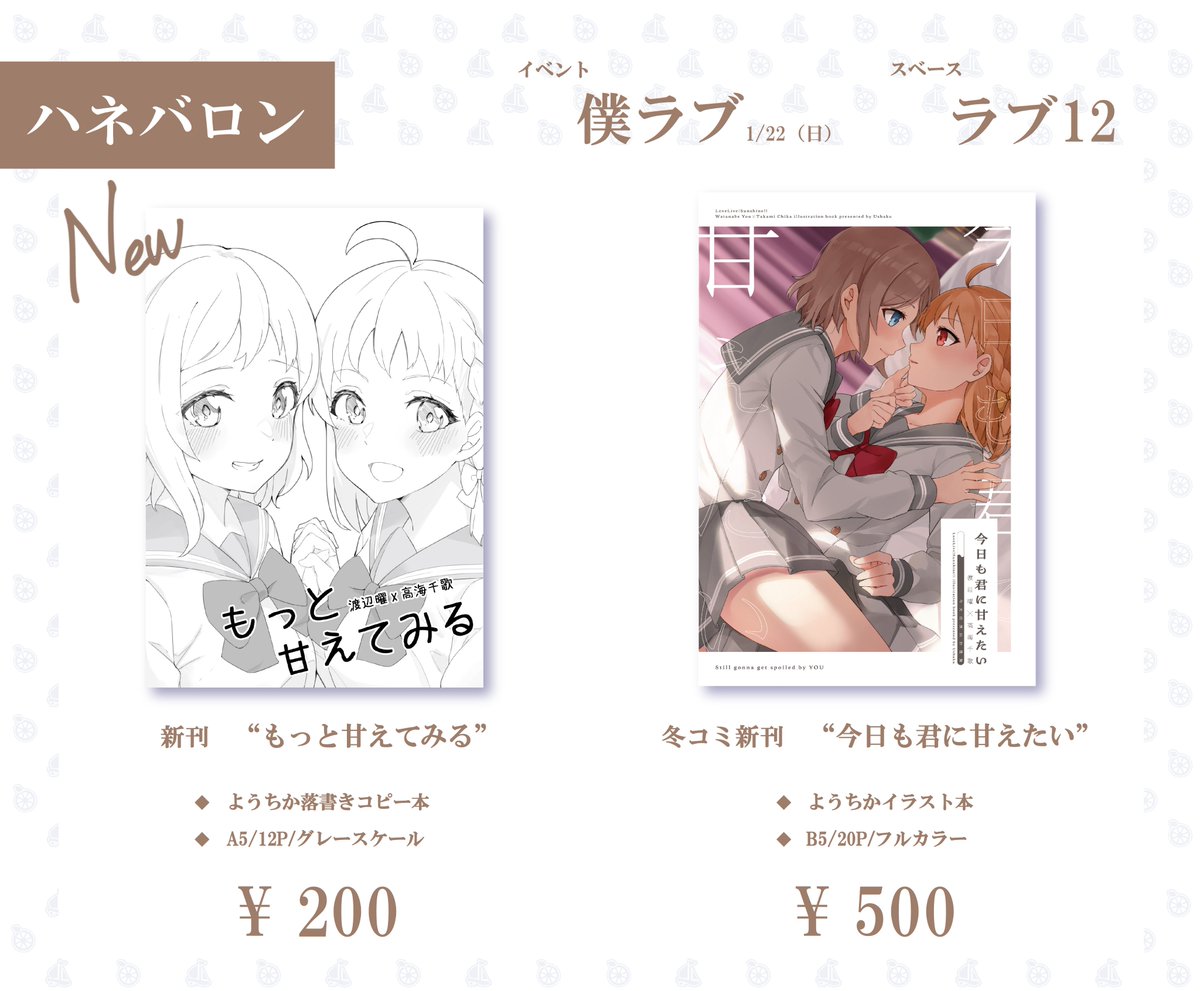 【僕ラブ】新刊の品書きです✨ ✿スベースは【ラブ12】 お待たせしました! 今回はようちかの落書きコピー本と色紙を用意していきます そして、冬コミ新刊も持っていきます(少量)! 当日はよろしくお願いします!🙇🏻♀️🙇🏻♀️ 冬コミ新刊通販(メロンブックス):melonbooks.co.jp/detail/detail.… #僕ラブ36