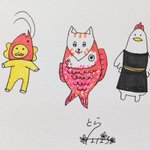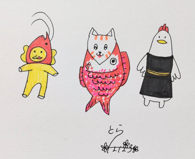 あけましておめでとうございます!! #元旦 今年も皆様よろしくお願いします!! おせちトリオで、ご挨拶!! 鯛ことら!!エビぞうたん!! 昆布巻きニワちゃん!! #絵描きさんと繋がりたい #みんなで楽しむTwitter展覧会 #イラスト #油性ペン #マッキー