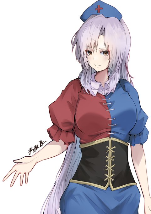🌙🎍 . . . つねみ(@ closer_f )さん主催 「東方ミュシャ風合同誌」にて寄稿したイラスト(全体公開許可が降りたので公開しました👌) 人選はめっちゃ悩んだのですが…構図は即決した思い出!布を垂らしたかった #蓬莱山輝夜 #八意永琳 #東方Project