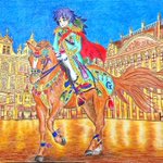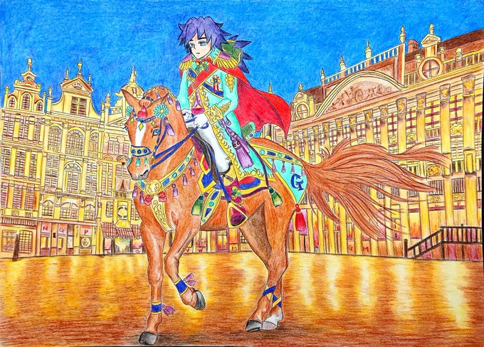 チョコレートの街ブリュッセル💙 グランプラス✨を歩くユアハイネス🌊ぎゆゆ ' Please say yes ’ 今日貴方へ届く沢山のプラリーヌにはみんなの❤️が沢山詰まってる😆 「わかっているよ。ちゃんと全部頂くよ😊👍💙」 ワタシからも、1粒贈ります💙 #冨岡義勇 #鬼滅の刃ファンアート #色鉛筆画