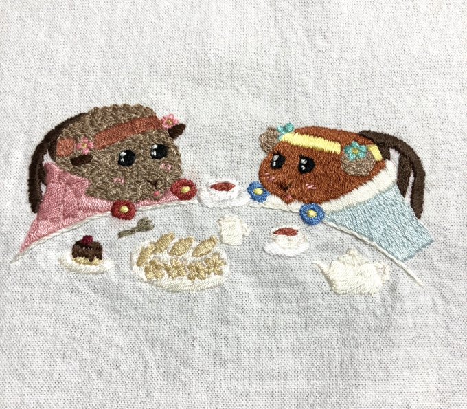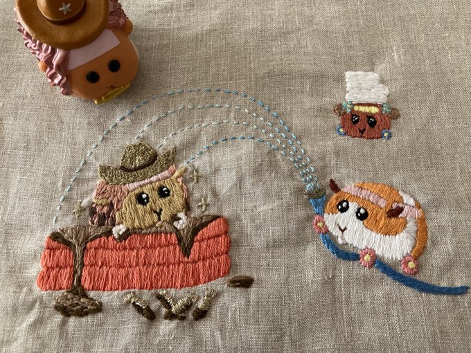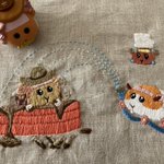 アビーちゃんお誕生日おめでとう❗️❗️🎂🎉👏 猫苦手なのに助けてあげる優しいところやがんばりやさんなところが大好きです🥰💕💕 アビーちゃん、ドライバー(おかあさん&オタク)を刺繍しました🪡 #アビー誕生日 #PUIPUIBIRTHDAY #モルカー #モルカーファンアート #刺繍