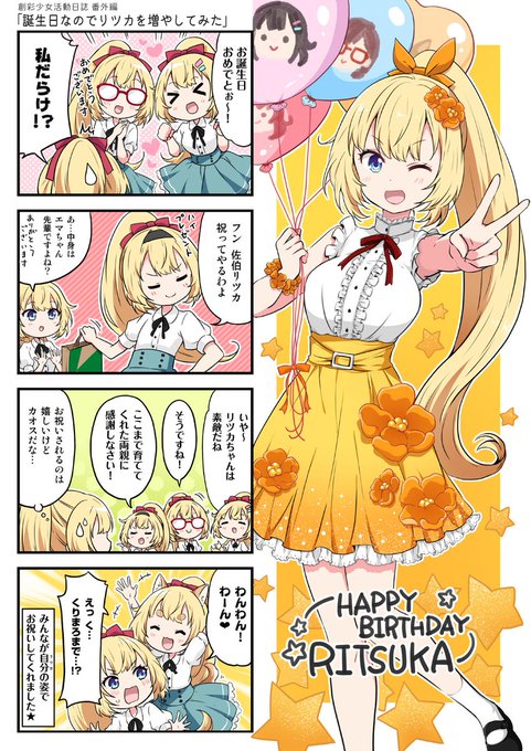 【Happy Birthday🎉🎉】3年目のリツカの誕生日なので、今年はチャイナドレスを着せてみた🎂 私は4コマ漫画で描いていますが4コマ漫画のみならず、皆さんのおうちのリツカちゃんが末長く愛されていきますように! #佐伯リツカ生誕祭2023 #創彩少女庭園