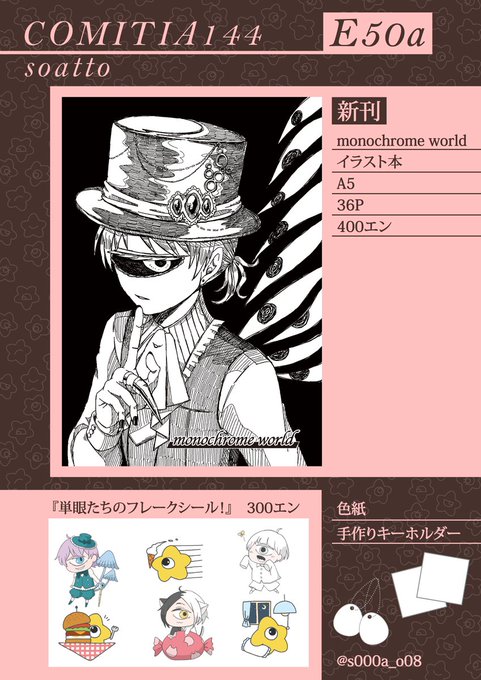 5/5(金)開催の #コミティア144 に参加します スペース【E50a】soatto 通販はイベント終了後に在庫がありましたらBOOTHでやる予定です うちの子ぬい持っていきます 遊びに来てね! #単眼 #COMITIA144 #コミティア144お品書き