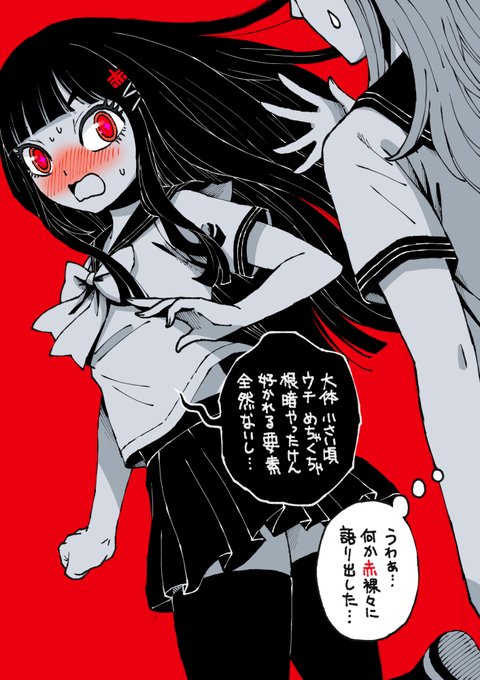 今日のpixivでのお題「赤」 「え? アイツがウチのこと好き!? ずっと前から…家族みたい…?」 「そ…そんなの真っ赤な嘘に決まっとーやん! 幼馴染でも もともと赤の他人やし! 好きって言われたこととか一度も…!」 #博多 #絵描きさんと繋がりたい #絵柄が好みって人にフォローされたい