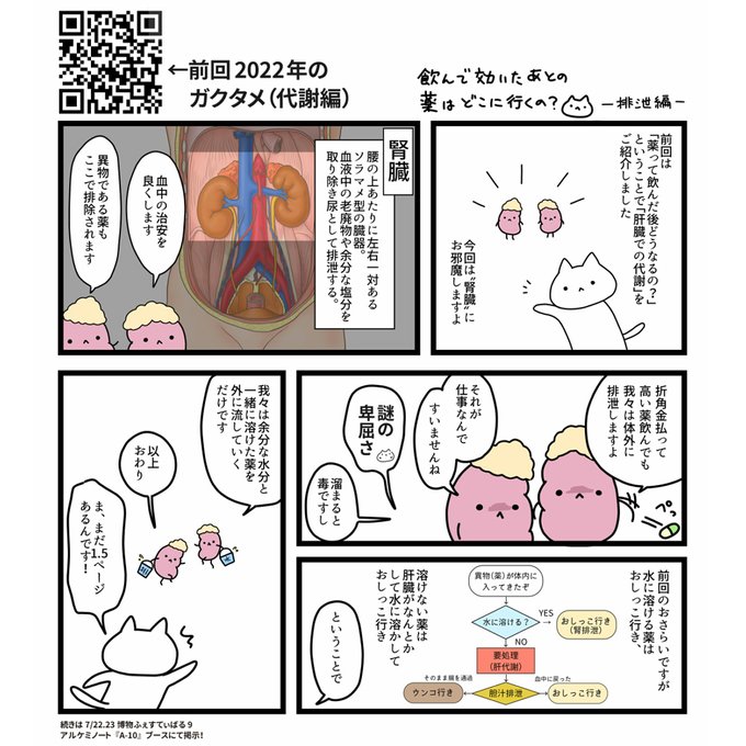 ガクタメ提出完了! 『飲んで効いた後の薬はどこに行くの?―排泄編―』 2023年はこんな感じ(仮)でいきますよ٩( 'ω' )و #博物ふぇす twitter.com/Sn50T/status/1…