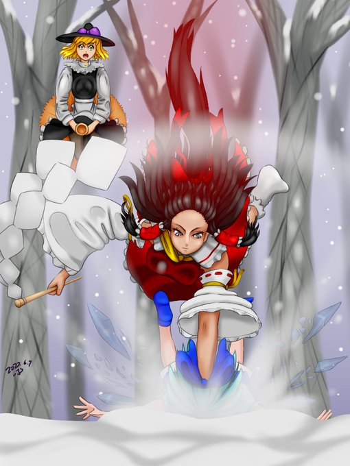 ⛩️「妖精って叩きのめしたらどうなるのかなぁ~💕」 ❄️「さ、さぁ… あたいコドモダカラワカンナイ…」 #チルノ #深夜の真剣お絵描き60分一本勝負 (東方版・1687回目参加・お題フリー) #博麗靈夢 #東方版もうひとつの深夜の真剣お絵描き60分一本勝負 (もうひとつ版・637回目参加) (※2月25日お題)