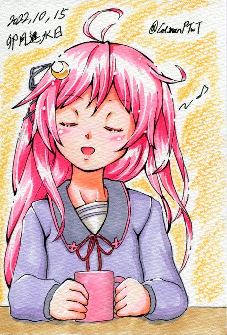 #卯月進水日 #艦これ版深夜の真剣お絵描き60分一本勝負 #艦これ版真剣お絵描き60分一本勝負_20221015 実はとても声が良いうーちゃん たまには静かに歌を歌いたくなることだってあるのさ 女声アカペラのイメージ(BGM)はこのツイートの返信リンクにて