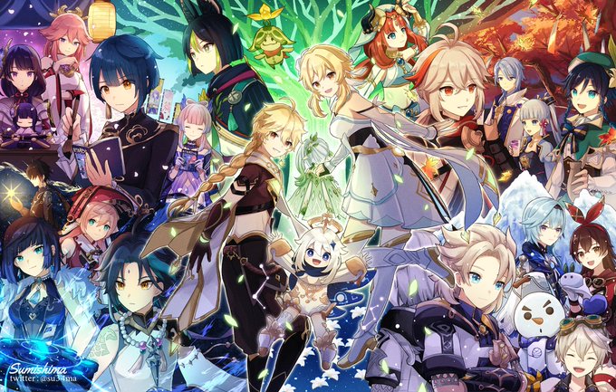 终于画完了,大家二周年快乐╰(*´︶`*)╯ 能力有限,没有画到你喜欢的角色或是你喜欢的角色画的不满意还请见谅 ∠( ᐛ 」∠)_ #原神二周年 #原神2周年 #原神 #Genshinlmpact #Genshin_Impact