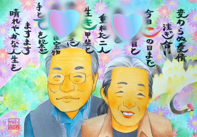 #古希 の #お祝い に #ご注文 いただきました! #ありがとうございました ✧*。 鶴と亀と、若者に負けない元気という花言葉の友禅菊を背景に描きました♪ 喜んでいただけたとのお話も伺って、大変調子に乗ってます← これからもがんばります\(^^)/ #色鉛筆 #色鉛筆画 #お絵描き好きさんと繋がりたい