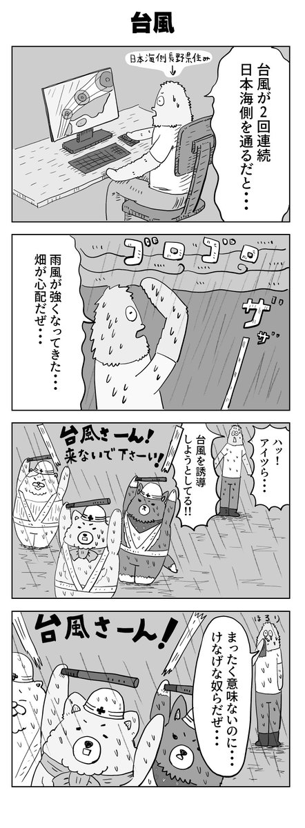 おはジンちゃん いやっ寒っ!! #おは戦41019sk #イラスト #台風 #動物 #可愛い #ゆるいイラスト #イラスト好きさんと繋がりたい #絵描きさんと繫がりたい #絵柄好みって人にフォローされたい #水曜日 #まんが