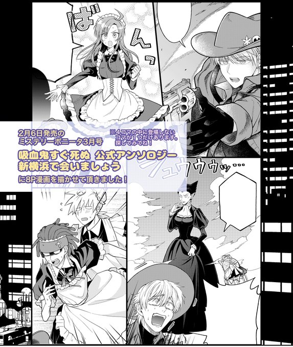 本日発売のミステリーボニータ3月号にて 【吸血鬼すぐ死ぬ】 公式トリビュート企画にて漫画を寄稿させて頂いております。 総勢31キャラクター登場しておりますので、よければ探してみて下さい! #吸血鬼すぐ死ぬ #ミステリーボニータ