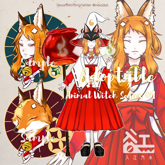 Fix Price Adoptable: Animal Witch 01 Fusion design of western witch and Japanese miko. Price 1: 50 usd (no commercial use) Price 2: 150 usd (commercial use ok) Full detail here: deviantart.com/iriesodaa/art/… #adoptable #ocart #witch #オリキャライラスト #和洋折衷 #キツネ #巫女 #魔女