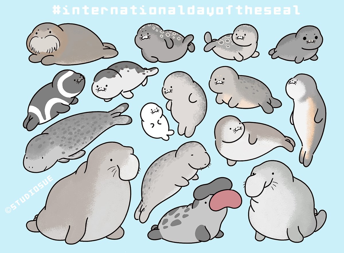 今日は #国際アザラシの日 🦭 いつもより多めによしよししちゃお! 仲良しな2匹の可愛いスタンプも よろしくね🤍💙↓ store.line.me/stickershop/pr… #イラスト #illustration #アザラシ #カワウソ