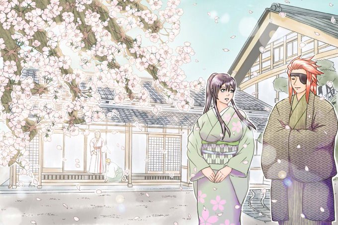 昨日の #地獄楽アニメ 第八話、あそこで公式小説の脚本を挿れてくるとは衝撃でしたね。典坐と士遠先生の関係がリアルタイムで明らかになって、より哀しみが増した…典坐〜〜😭😭😭 イラストは1年以上前に上記の典坐公式小説の挿絵企画に公募した時のもの。「桜咲く庭」 #地獄楽ファンアート #地獄楽