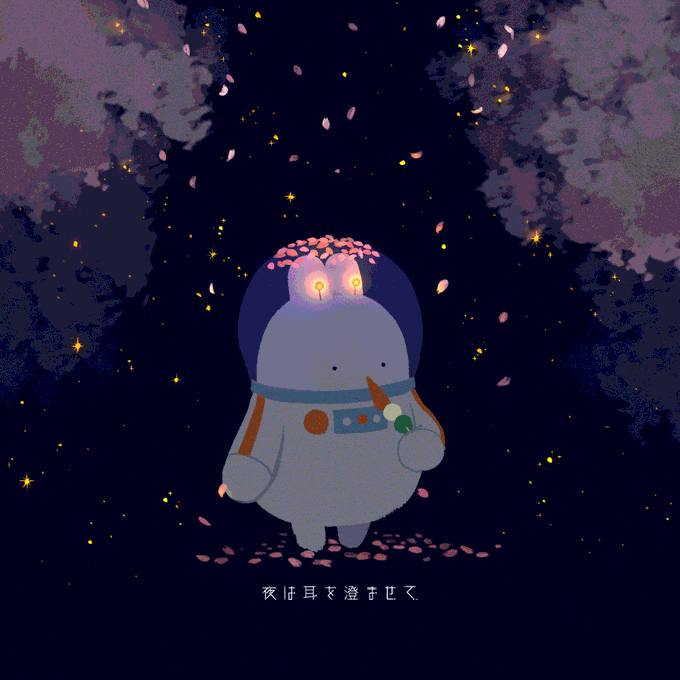夜桜くん 『もうそろそろでお別れだね…大丈夫、また来年会えるよ』 まだ見てたかったけど雨降るし今日も風すごいしこりゃぁ桜散ってしまいますよね… お休みなさい。良い夢を。 #デジタルイラスト #夜桜 #絵描きさんと繋がりたい