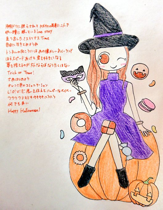 おはようございます☀️ Happy Halloween🎃🍰🍨🍩🍪🍫🍭🍮 10月ラスト!Happyで素敵な1日を🌈🍀☺️💕 Song「Fairy tale~my last teenage wish~」×「オレンジのハッピーハロウィン」 #倉木麻衣 #大原櫻子 #halloween2021 #歌詞 #イラスト #女の子イラスト #イラスト好きな人と繋がりたい