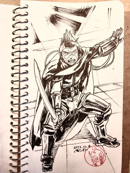 #インクトーバー2022 #inktober2022 #インクトーバー #inktober #メガテン #女神転生 10月13日KIND/親切な 真Ⅰのロウヒーロー・ヨシオちゃんです。親切な…優しいひとは誰だろうと考えたら彼になりました。SFCの時の90年代ふうロンゲにルーズシルエットな衣装を着こなすあの姿を描いてみたくて