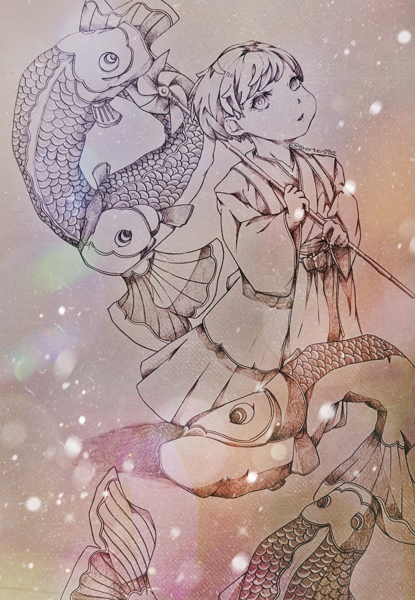 今日は子どもの日🎏 鯉のぼりも空を泳いでます #イラスト #イラスト好きさんと繋がりたい #絵 #絵師さんとつながりたい #デジタルイラスト #らくがき #絵描きさんと繋がりたい #子どもの日 #鯉のぼりの日