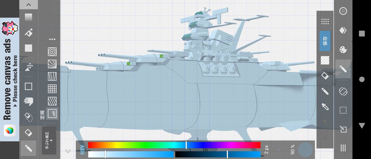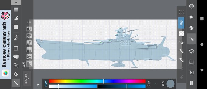 多分、主要なディテールは出来たと思う。コレに線を入れてディテールと陰影を重ね、出力したデータに彩色、かな? #メディバンペイント #MediBang #イラストメイキング #ガチ制作会 #宇宙戦艦ヤマト