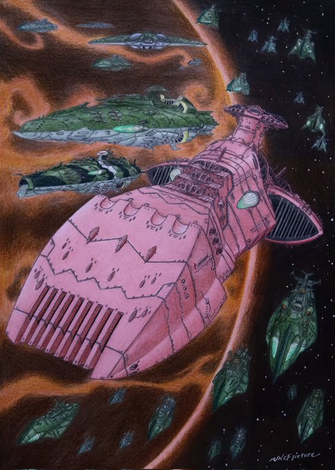 バーガー艦隊 その2 「やっと追いついたぜ。全艦、対空戦闘!蹴散らせェ!!」 #宇宙戦艦ヤマト2205 #宇宙戦艦ヤマト #イラスト #イラスト好きと繋がりたい #私の絵柄が好みって人にフォローされたい #宇宙戦艦ヤマト2199