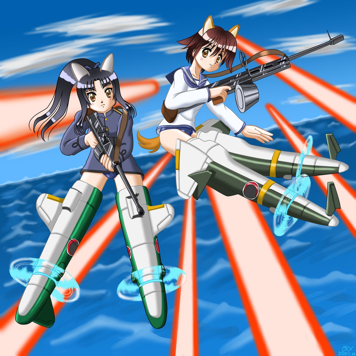 ストパン描きました。^^ 今までパンツアニメだと思って毛嫌いしてました。 すみません。いい作品でした。m(_ _)m 初めて銃描いたのですが、銃って難しいですね。orz #ストライクウィッチーズ #宮藤芳佳 #服部静夏