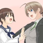 みほーあけのーよしか | Aikazilla #pixiv pixiv.net/en/artworks/90… #ガルパン #西住みほ #ハイスクール・フリート #岬明乃 #ストライクウィッチーズ #宮藤芳佳
