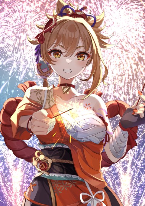 うちが描いた宵宮見てくれよ....色々足りなかったろ違かったりするかもだけど結構可愛く描けたのよ...‼️ #宵宮 #原神イラスト #GenshinImapct #原神絵描きさんと繋がりたい