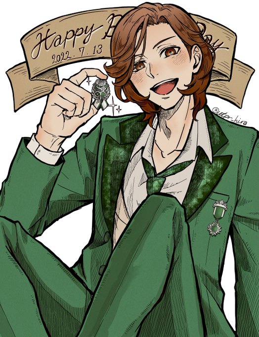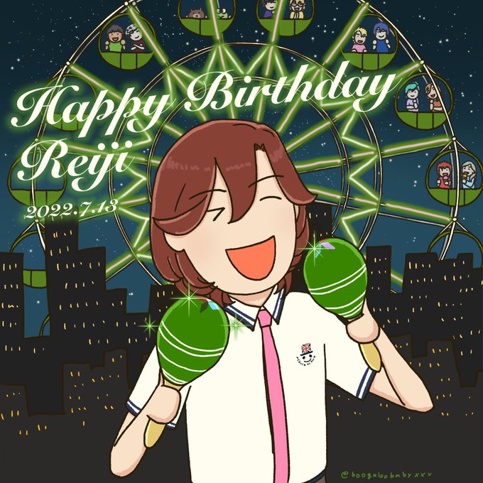 寿嶺二さん、お誕生日おめでとうございます💚👏🎉🎁🎂🎊👑🎡🍀🏄♂️🕶🎩🇬🇧🍩🕯 いつもその存在にたくさんのものを頂いてます。 嶺二さんのこれからの道も好きなものに囲まれ、幸せに満ちた日々となりますように… #utapri_reiji_BD2022 #寿嶺二_BD2022
