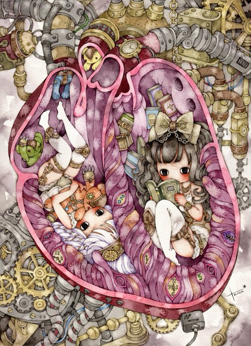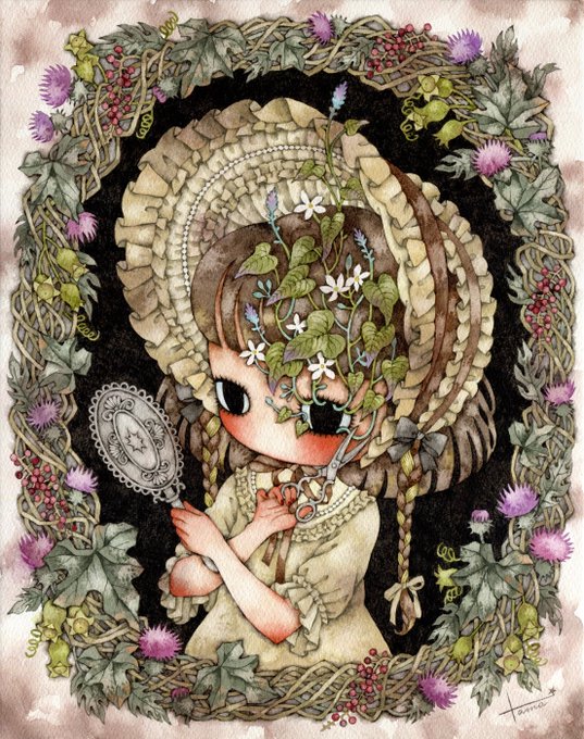 なぜか透明水彩がトレンド入りしてる~♪ 私はマスキング無しで主線も筆でぼかして入れています。 4回にもわたる重ね塗りにより立体感と深みを出す彩色方法は完全我流。 #透明水彩 #少女主義的水彩画家たま