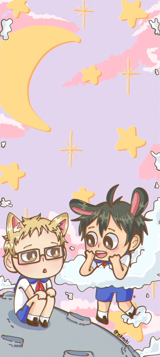 Drew a TsukkiYama wallpaper for myself 💚💛 Also feel free to use it, if you want too ✨ #月島蛍 #山口忠 #月山 #tsukkiyama #haikyuufanart #haikyuu