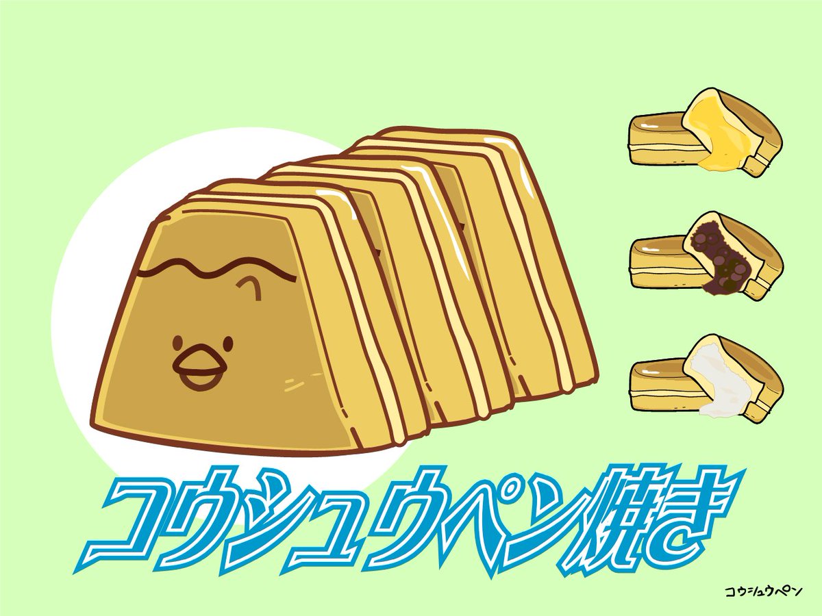 富士山型の生地に「あんこ・チョコ・カスタード・季節の味」を閉じ込めた和菓子 “コウシュウペン焼き🏔” 顔は焼き印によって描かれ3種類の表情が楽しめます。(※レアがあると噂も?) #コウシュウペンの空想オフィシャルグッズ #スイーツの日 #イラスト #illustration #甲州弁 #山梨県 #山梨