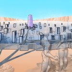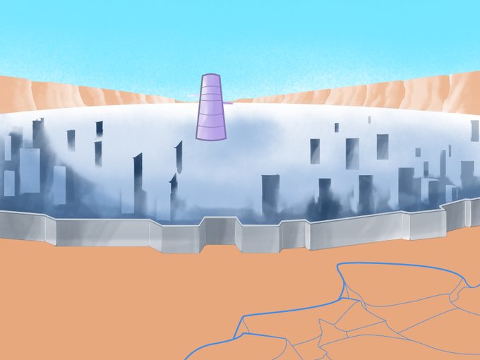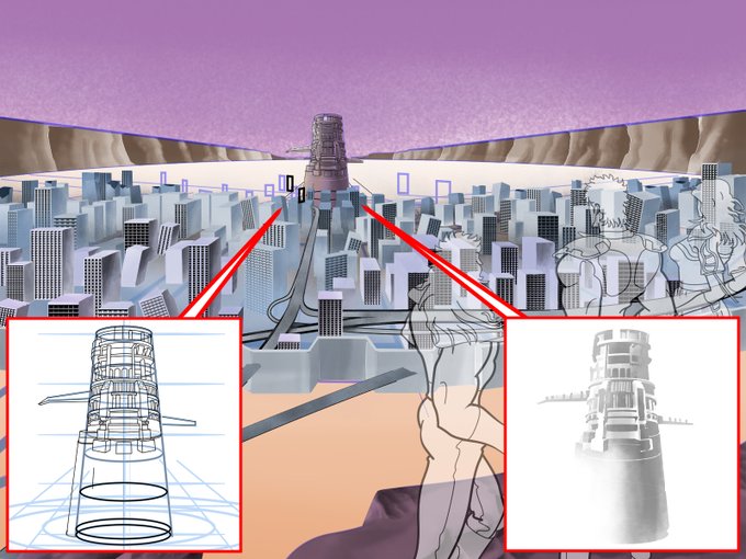 監獄塔は別ファイルで拡大して描いているが、線画より(アニメの背景みたく)「塗り」だけで、表面の凸凹を表現したい所 ・・・だが、マスクで塗り分ける為には線を描く必要が出て来る #北斗の拳 #カサンドラ #illustration #イラスト #デジタルイラスト #クリスタ #グランドキャニオン #岩肌