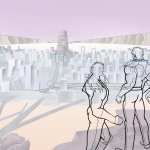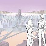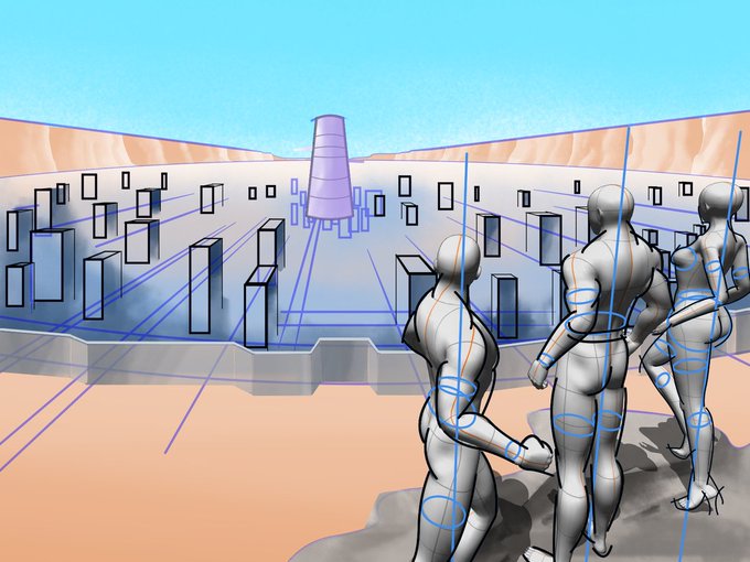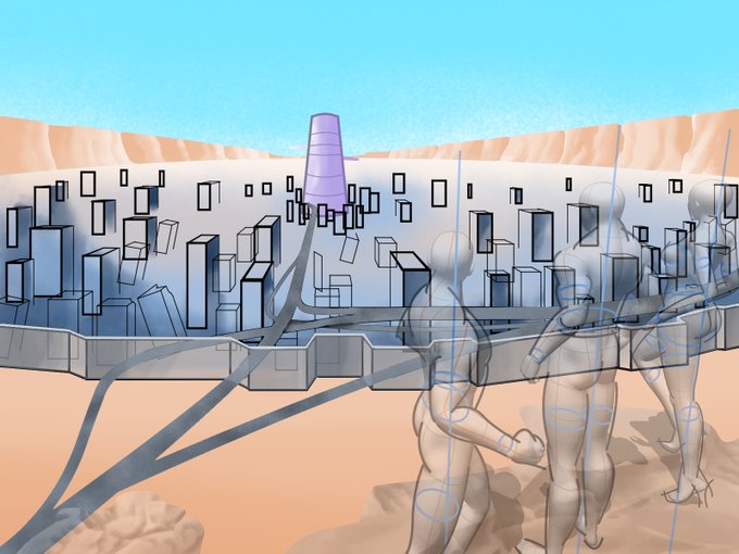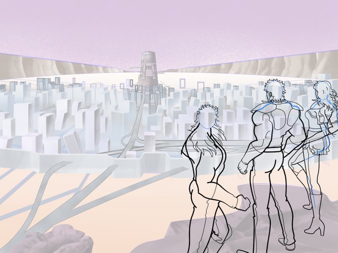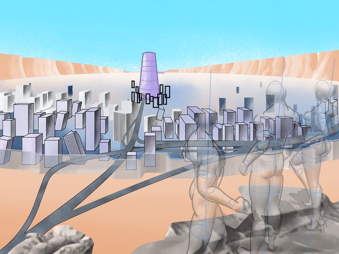 手前の丘は前回、人物の脚の置き場との位置関係、高さを曖昧にして苦労したので、事前の描き込みをしっかりしたい所 #北斗の拳 #カサンドラ #illustration #イラスト #デジタルイラスト #グランドキャニオン #岩肌