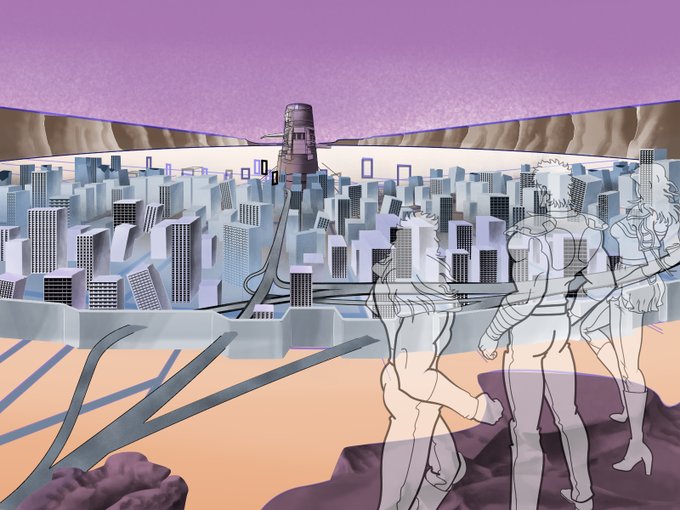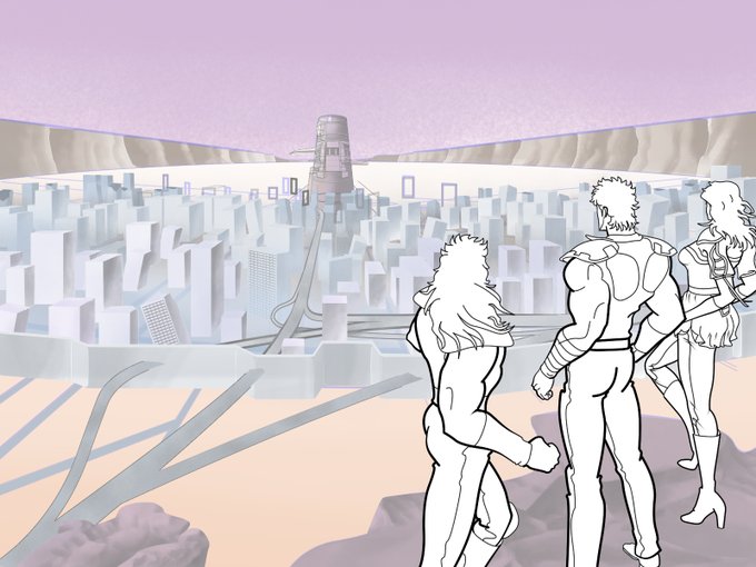 ちなみに、手前から5列目のビル群はこうなっています 手前の描き込みが功を奏し、ここから奥はビルの基部をあまり気にせず描ける様になる、筈 そろそろ城壁手前をどうするか考えねば #北斗の拳 #カサンドラ #illustration #イラスト #デジタルイラスト #クリスタ #グランドキャニオン #岩肌