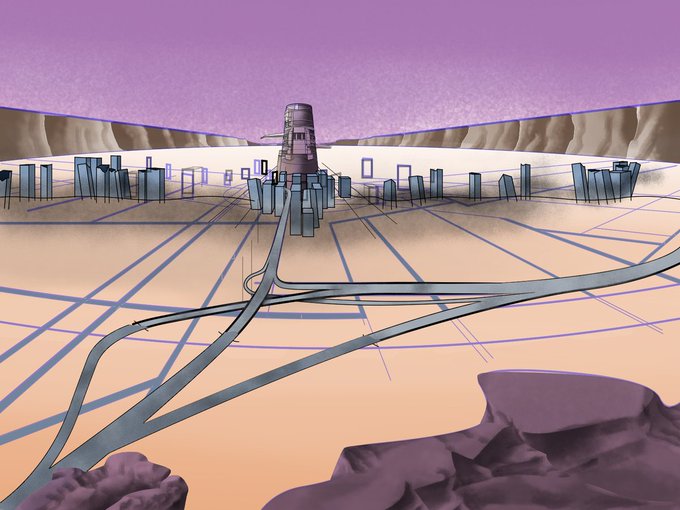 直角に曲がっているハイウェイをジャンクションと解釈しアレンジ(遠回りだが、こういう寄り道が楽しい) #3枝交差の「#準直結Y型」というヤツを適用(描いてから壊します) #北斗の拳 #カサンドラ #illustration #イラスト #デジタルイラスト #グランドキャニオン #岩肌 #栃木都賀ジャンクション
