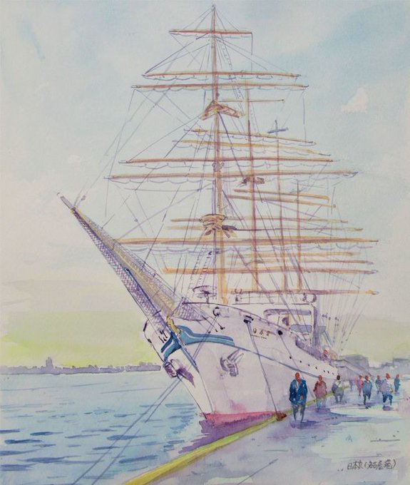エデクシーさんの絵師でつなげる47都道府県行脚に参加しました。その22のお題は兵庫県+白色+光。 神戸港の日本丸と海王丸。 @edkshiV2 #絵師でつなげる47都道府県行脚 #イラスト好きな人と繋がりたい #絵描きさんとつながりたい #芸術の輪 #芸術同盟 #イラスト #神戸 #帆船 #創作 #絵描き