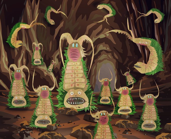 ゼットン(二代目)とほのぼの追いかけっこするレッドマンを描いたー(skeb依頼、ブーストありがとうございます) ……和気藹々として楽しいそうですね! #帰ってきたウルトラマン #レッドマン