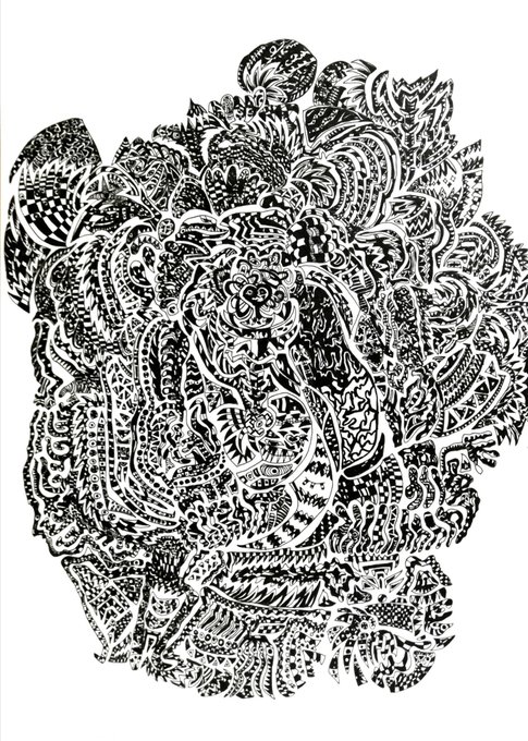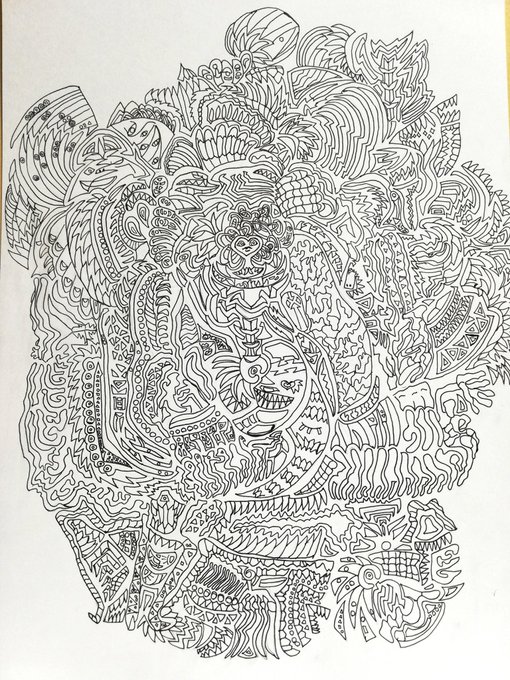 中2息子の #創作画 #ペン画 題名『ロタティオン』 息子の大好きな #平沢進 氏の曲を 息子なりに表現して仕上げました🥰🌛 下絵&途中経過は過去にUPしています💞 #みんなで楽しむTwitter展覧会 #絵描きさんと繋がりたい #アナログ #拡散 #美術ネットワーク #drawing #sketch #susumuhirasawa #art