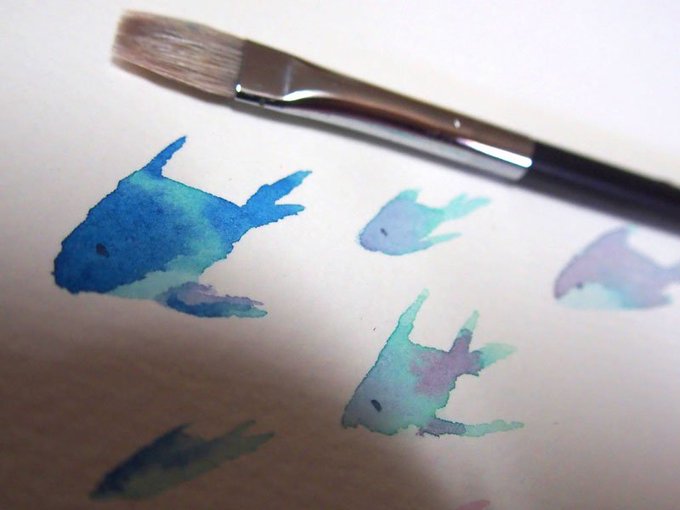 暑いと、つい描くのは涼し気なものになっちゃうね。 シンプルな水彩画を、平筆だけで描くというのを模索中〜♪ #透明水彩 #水彩画 #水彩絵を流して水彩民を増やそう #画材研究タグ #ホルベイン #ウォーターフォード #平筆
