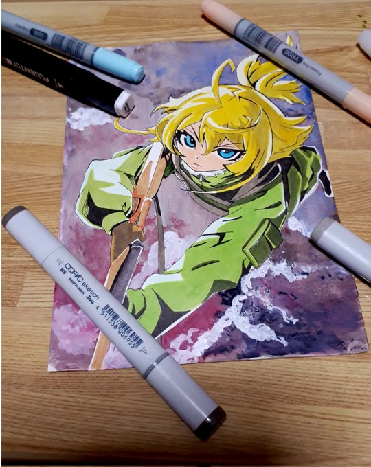 クリスマスに投稿するはずが 体調崩して一日遅れた悲しき ターニャちゃん絵の全身バージョンです。泣 最近は塗り方を変えて、 髪と衣類を影つけ⇒段調化⇒厚塗り(?)の順番 楽しいけど非常に時間がかかる #イラスト #幼女戦記 #絵柄が好みっていう人にフォローされたい