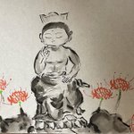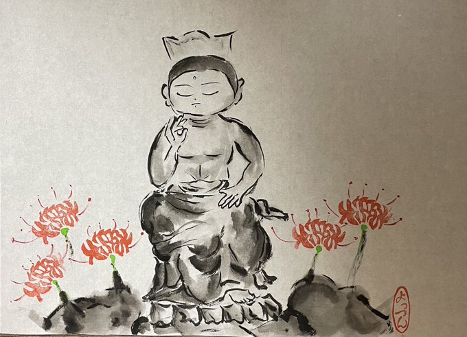 #書道もどき #半紙 #弥勒菩薩 #水墨画風 #イラスト #イラスト好きさんと繋がりたい #絵描きさんと繋がたい 明日は良い天気になりそうですね✨ こないだ崇禅寺で弥勒菩薩を 拝見したので😊 今日もお疲れ様でした(*´◒`*)